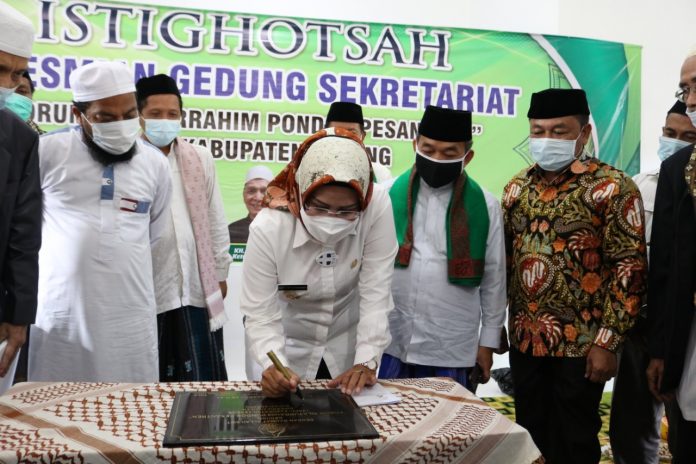 BBC Serang – Bupati Serang Ratu Tatu Chasanah meresmikan Gedung Forum Silaturahmi Pondok Pesantren atau FSPP Kabupaten Serang di Kampung Baruan, Desa Sindangsari, Kecamatan Pabuaran, Rabu, 16/12/2020. Dalam sambutannya, Tatu meminta kepada para alim ulama, ustadz agar bersinergi dengan pemerintah daerah dalam mendukung program tentang keagamaan.