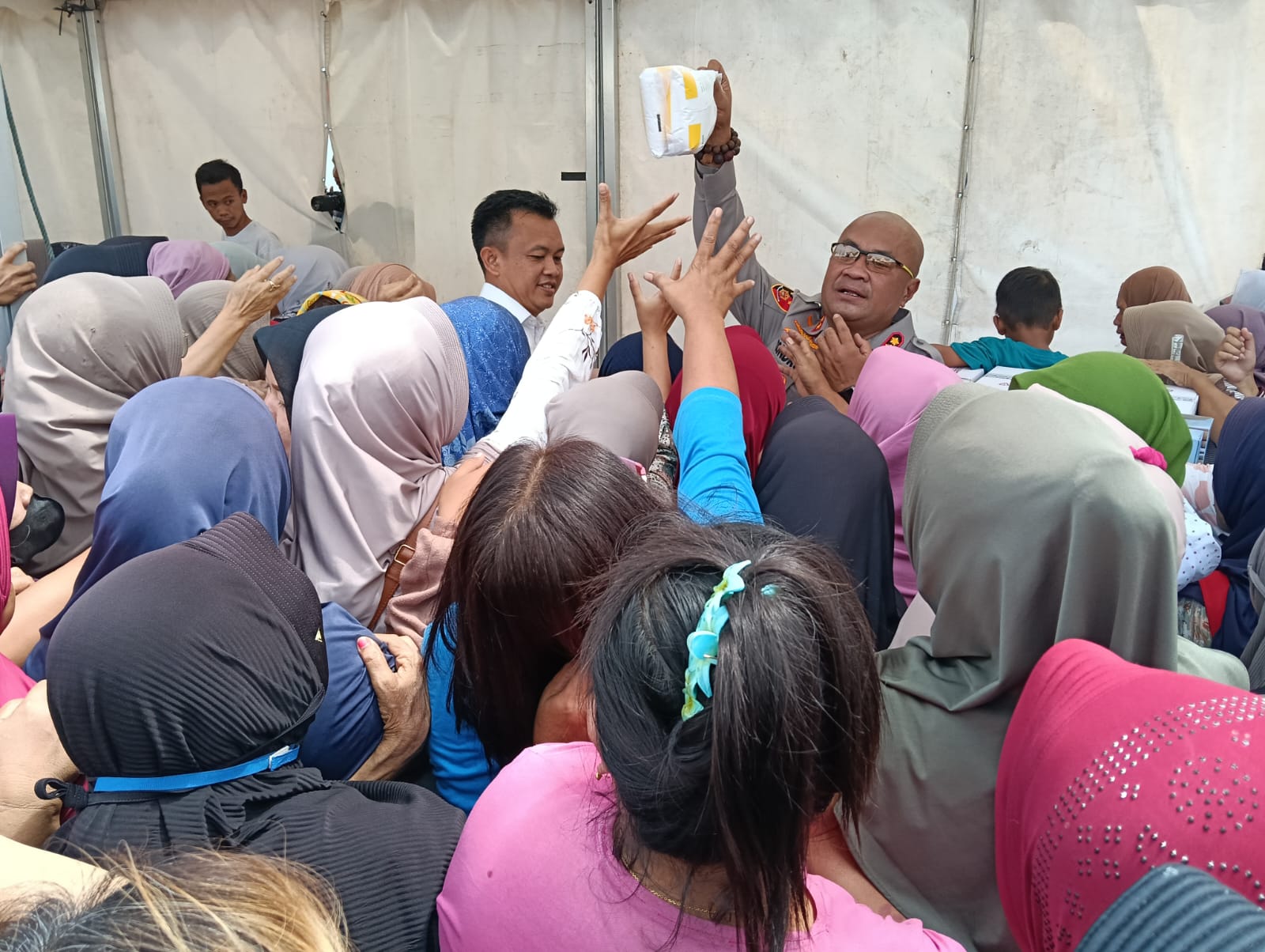 “Pemberian door prize serta beras, minyak goreng dan terigu, dikhususkan bagi ibu hamil, emak-emak lanjut usia untuk membantu meringankan kebutuhan keluarga,” kata Kapolres Condro Sasongko.