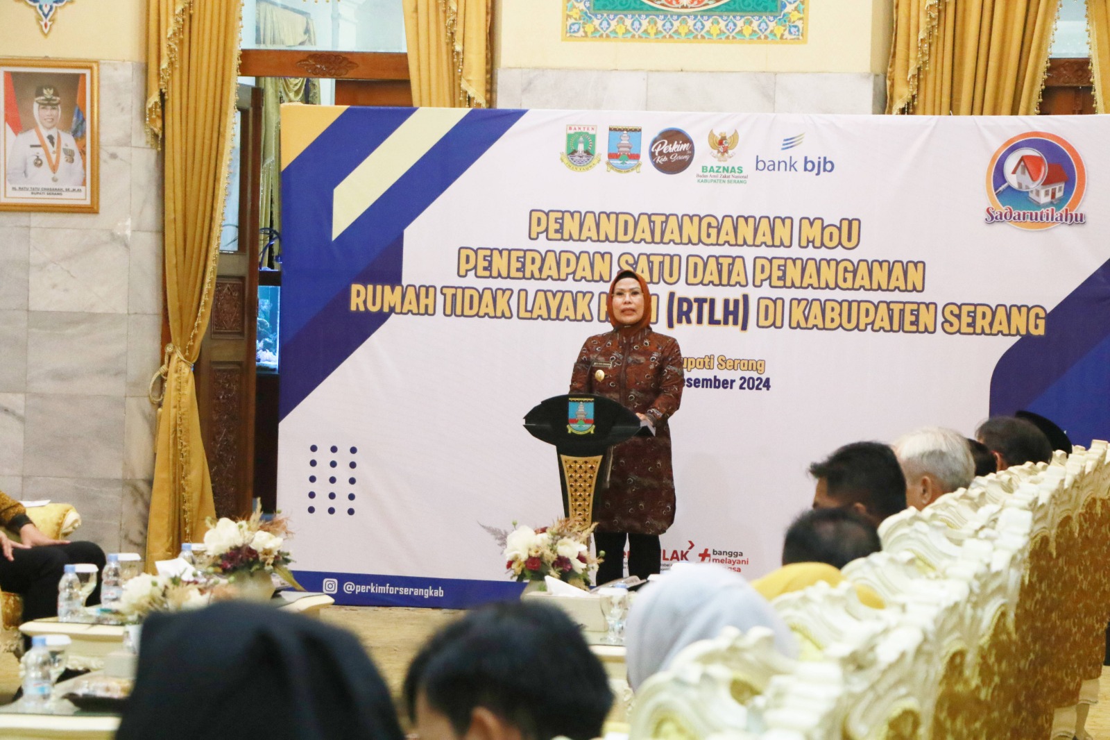 Guna menuntaskannya, Pemkab Serang pun melakukan penandatanganan MoU Penerapan Satu Data Penanganan RTLH di Kabupaten Serang. Penandatanganan MoU dilakukan oleh Bupati Serang Ratu Tatu Chasanah, Kepala Dinas Perumahan Rakyat dan Kawasan Permukiman (Perkim) Provinsi Banten, Rachmat Rogianto, kemudian Kepala Dinas Perumahan Rakyat dan Kawasan Permukiman (DPRKP) Kabupaten Serang, Okeu Oktaviana, Ketua Baznas Kabupaten Serang, Badrudin, dan Kepala Bank bjb KCK Banten, Ujang Aep Saefullah di Pendopo Bupati Serang, Kamis 5 Desember 2024.
