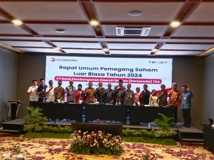 “Hari ini telah dilaksanakan seremonial agenda Rapat Umum Pemegang Saham Luar Biasa (RUPSlB) terkait ADART perusahaan. Ini juga tindaklanjut dari terbitnya Peraturan Daerah dan Bank Banten menjadi mandiri sendiri dibawah pemprov Banten,” ujar Pj Gubernur, Jumat (23/2/2024).