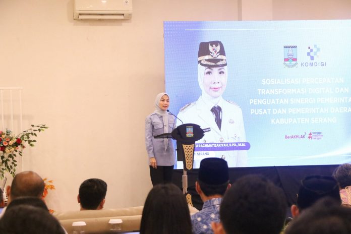 BBC, Serang – Bupati Serang Ratu Rachmatuzakiyah meluncurkan atau launching rebranding Aplikasi Serang Bahagia serba Digital (Serba Digi) dan Tim Tanggap Insiden Siber (TTIS) Kabupaten Serang di Pesona Krakatau Hotel dan Cottage Kecamatan Cinangka pada Kamis, 16 April 2026. Serba Digi merupakan upaya Pemerintah Kabupaten (Pemkab) Serang untuk meningkatkan pelayanan kepada masyarakat.