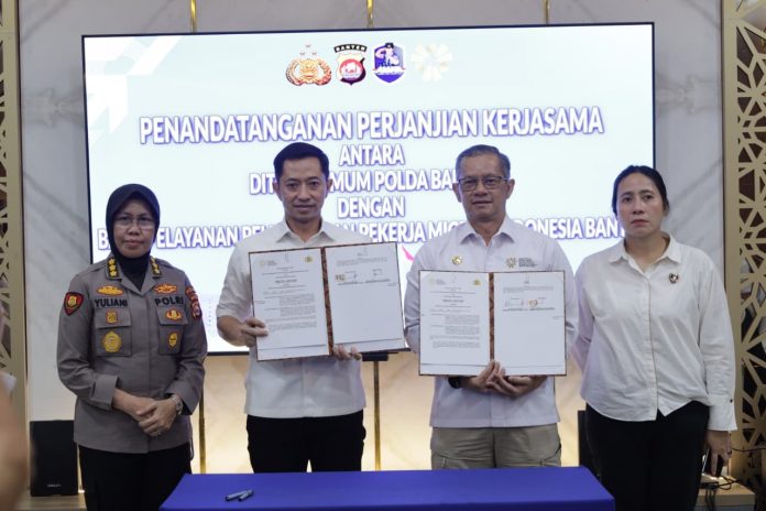 BBC, Serang – Direktorat Reserse Kriminal Umum (Ditreskrimum) Polda Banten melaksanakan penandatanganan perjanjian kerja sama dengan Balai Pelayanan Pelindungan Pekerja Migran Indonesia (BP3MI) Banten sebagai langkah strategis dalam memperkuat perlindungan terhadap pekerja migran Indonesia (PMI). Kegiatan tersebut bertempat di Maung Lounge Polda Banten, Rabu 22April 2026.