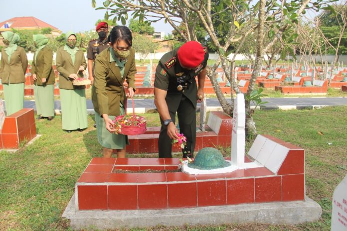 Ziarah rombongan diakhiri dengan  acara tabur bunga ke makam Pahlawan yang pelaksanaannya didahului oleh Pimpinan rombongan dan diikuti seluruh anggota Persit yang turut hadir dalam ziarah rombongan, Prajurit Grup 1 Kopassus, ASN (Aparatur Sipil Negara), Saka Wira Kartika dan AKBM (Anak Korps Baret Merah).