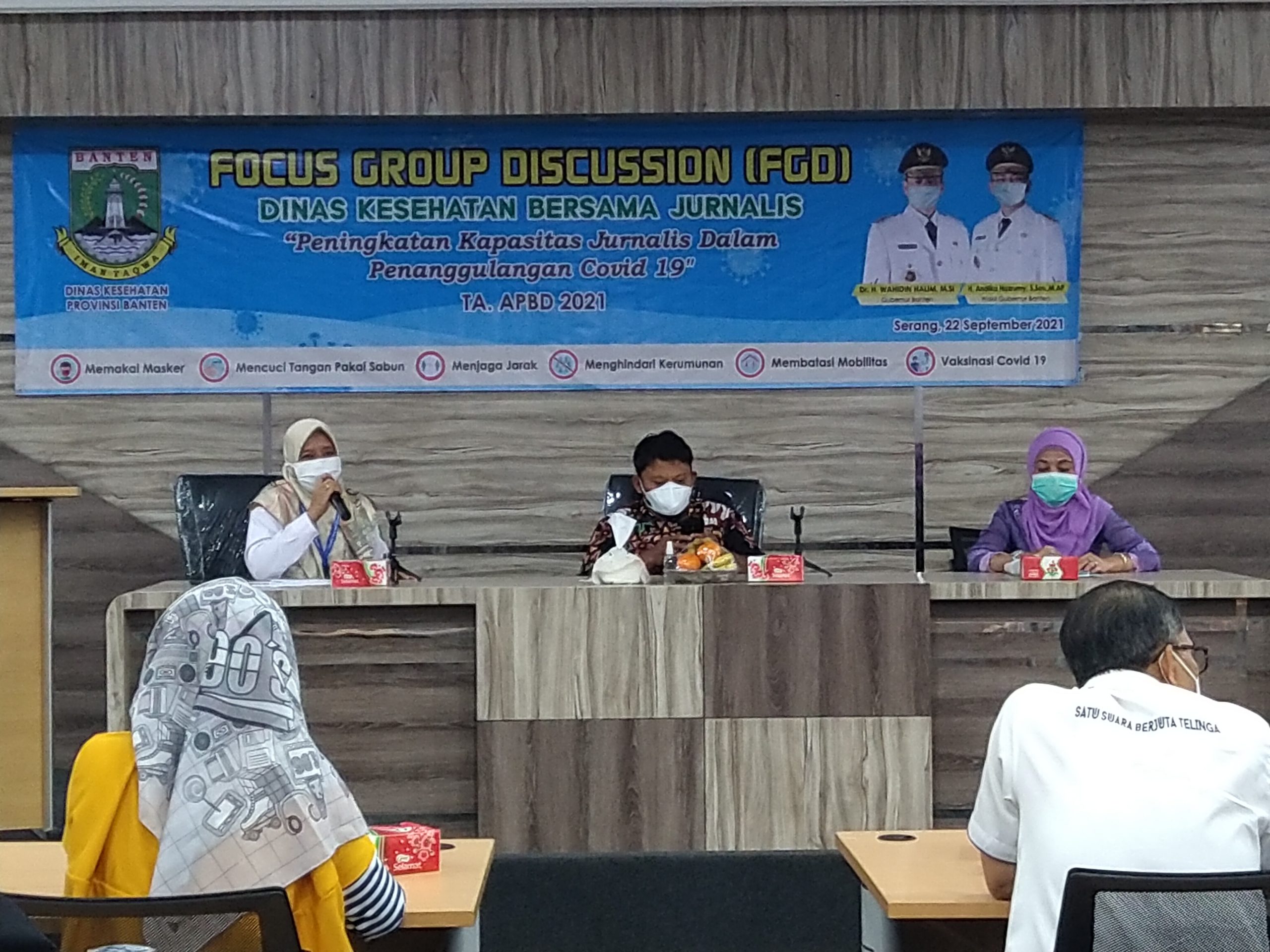 BBC, Serang – Dinas Kesehatan (Dinkes) Provinsi Banten, menggelar kegiatan Focus Group Discussion (FGD) dengan para Jurnalis di Auala gedung Dinkes Provinsi Banten, Rabu (22/9/2021). Tujuan Dilakukannya kegiatan FGD dengan para Jurnalis yakni, dalam rangka untuk meningkatkan kegiatan sosialisasi tentang kesehatan untuk masyarakat di Banten.