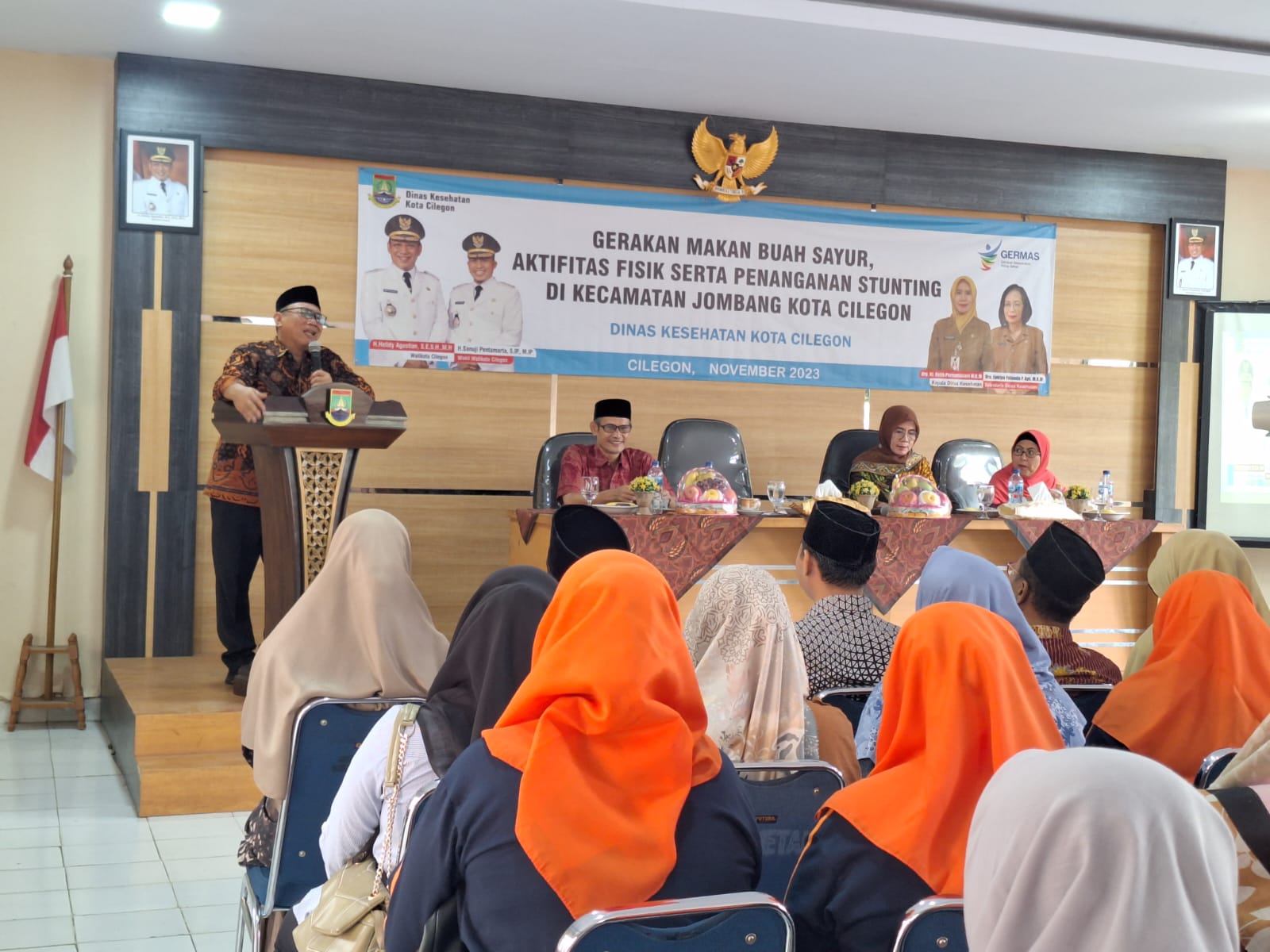 BBC, Cilegon – Dinas Kesehatan (Dinkes) Kota Cilegon menggelar kegiatan Gerakan Makan Buah dan Sayur, Aktifitas Fisik, serta Penanganan Stunting, di Aula Kecamatan Jombang, Jumat (3/11/2023).