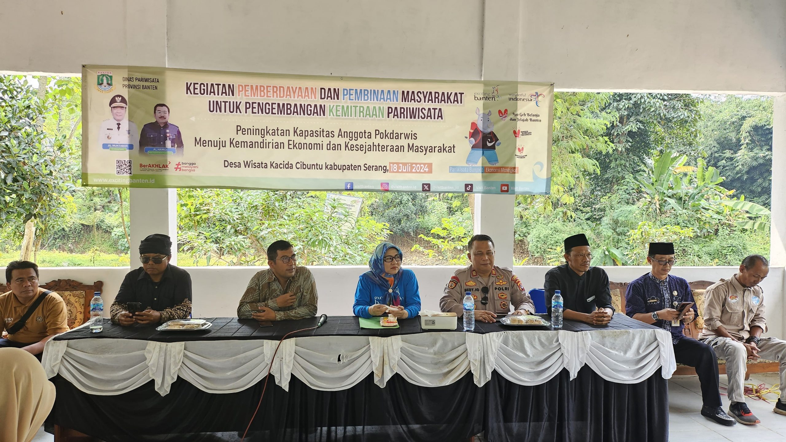 BBC, Serang – Dinas Pariwisata Provinsi Banten menggelar kegiatan pemberdayaan dan pembinaan masyarakat mitra pariwisata dengan fokus pada peningkatan kapasitas anggota Kelompok Sadar Wisata (Pokdarwis) di lokasi Wisata Desa Kacida Cibuntu Kabupaten Serang, Kamis 18/7/2024. Acara ini bertujuan untuk mendorong kemandirian ekonomi dan kesejahteraan masyarakat setempat. Acara resmi dibuka oleh Kepala Bidang Sumber Daya Manusia Pariwisata dan Ekonomi Kreatif Dinas Pariwisata Banten, Linda Rohyati.
