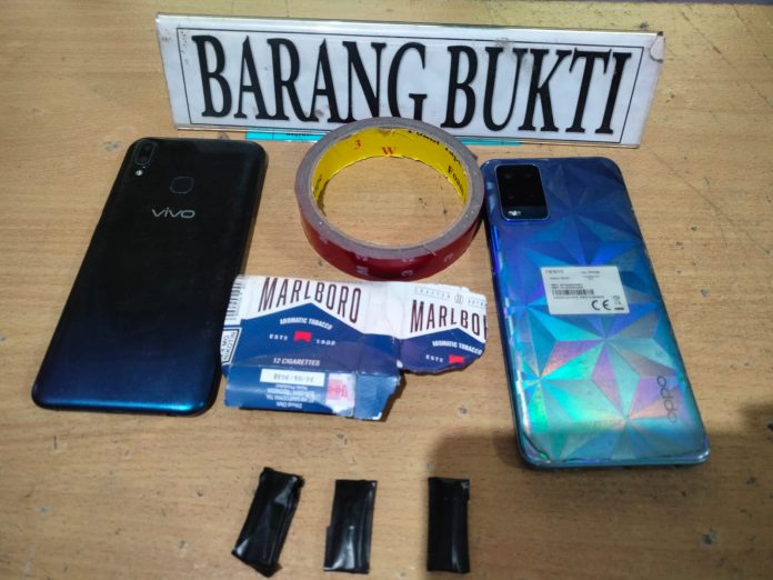 “Selain itu didapati 1 buah lakban 3M dipojokan jendela rumah, 1 Unit Handphone merk OPPO milik tersangka MA (24),1 Unit Handphone merk VIVO milik tersangka TS (23) serta 1 (satu) Unit SPM Honda Beat warna biru putih Nopol A-5775-WS yang digunakan untuk mengedarkan narkotika jenis sabu tersebut,” ucap Shilton.