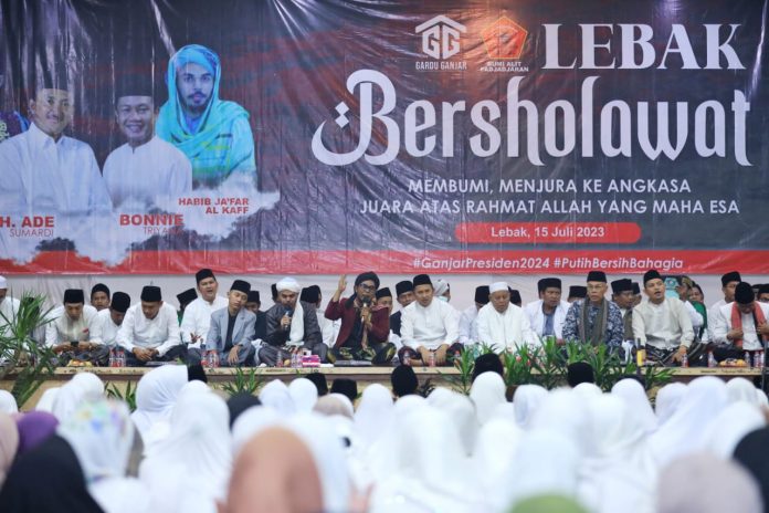 BBC, Lebak – Sukarelawan Ganjar Pranowo yang tergabung dalam Gerakan Rakyat Desa untuk (Gardu) Ganjar menggelar gebyar selawat bertajuk ‘Lebak Berselawat di Gedung As-Sakinah, Jalan Soekarno-Hatta, Kecamatan Cibadak, Kabupaten Lebak, Banten, Sabtu (15/7/2023) malam.