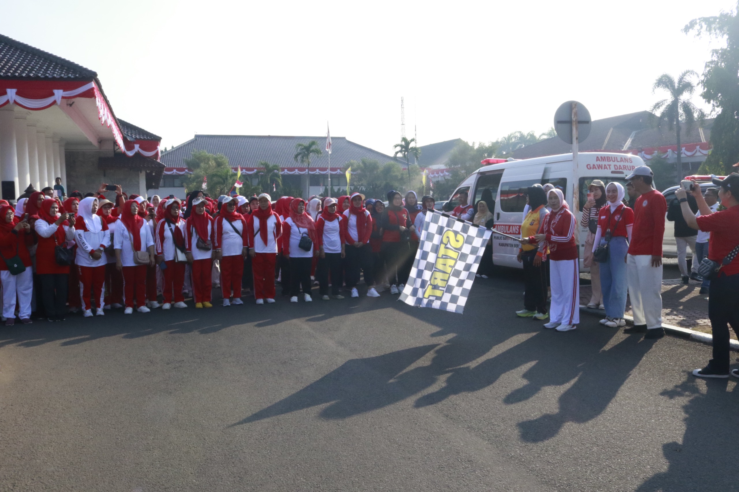Di ikuti ratusan peserta, start jalan santai bertempat Halaman Pendopo Bupati Serang menuju Jalan Yumaga Benggala sampai pertigaan Benggala menuju kedalingan. Kemudian lanjut menuju jalan veteran dan finis kembali di halaman Pendopo Bupati Serang.