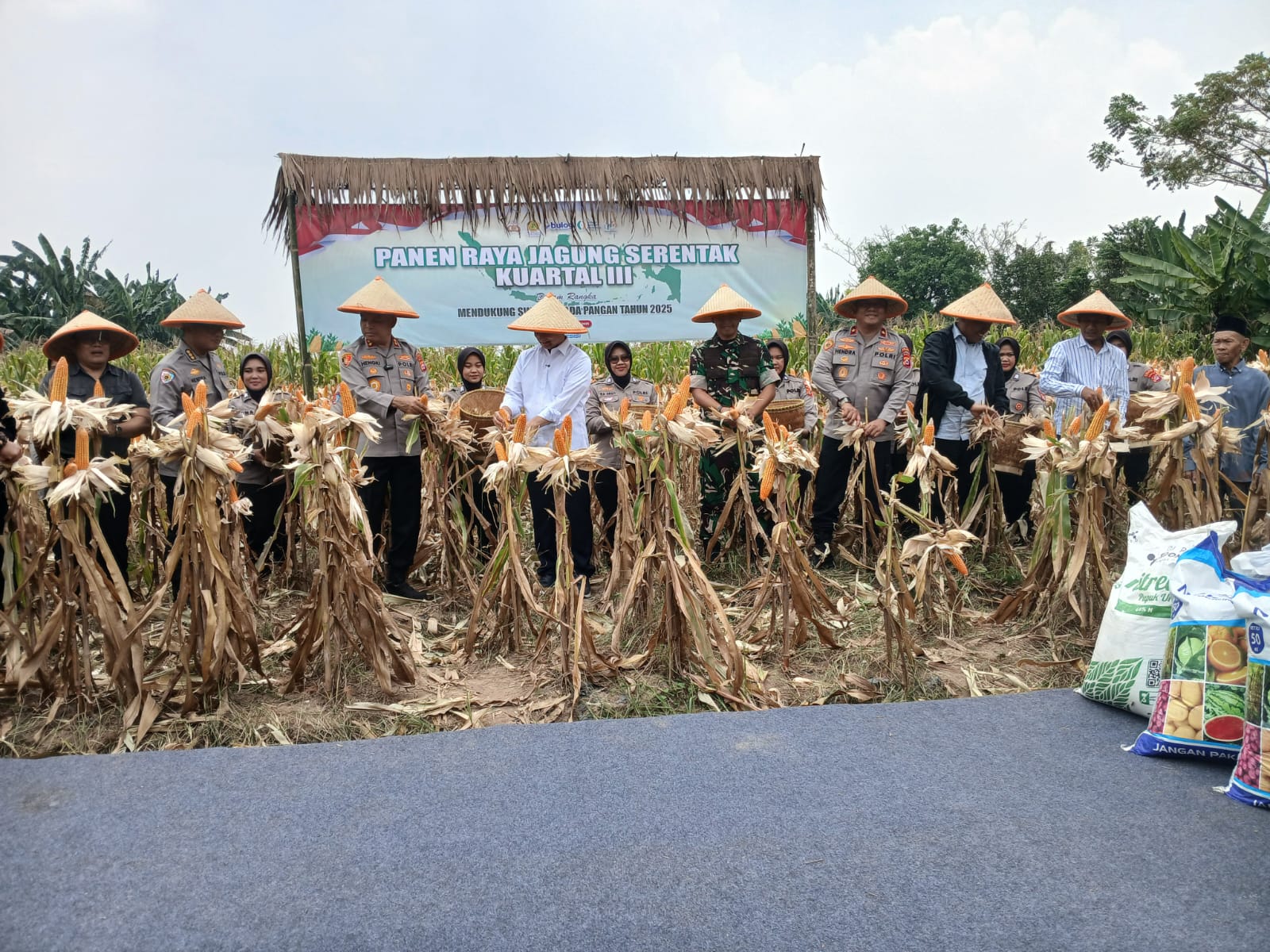 Panen raya jagung kurtal III di Desa Ranjeng Kecmata Ciruas Kabupaten Serang ini dihadiri langsung Kapolda Banten Irjen Pol Hengki dan Wakil Gubernur Banten, Dimyati Natakusumah.