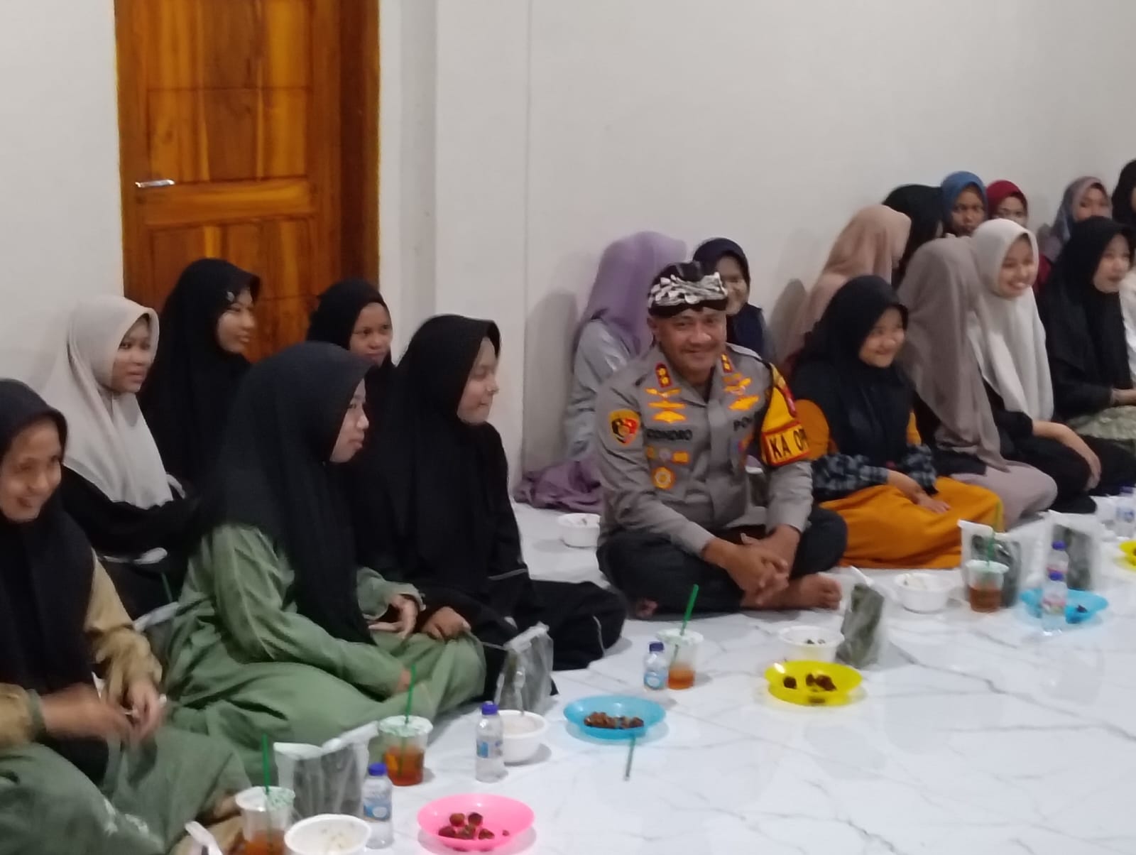 Usai santap bersama, Kapolres menggelar ngobrol bareng dalam rangka menyampaikan pesan kamtibmas kepada para santri dan santriwati pondok pesantren agar tekun menuntut ilmu agama.