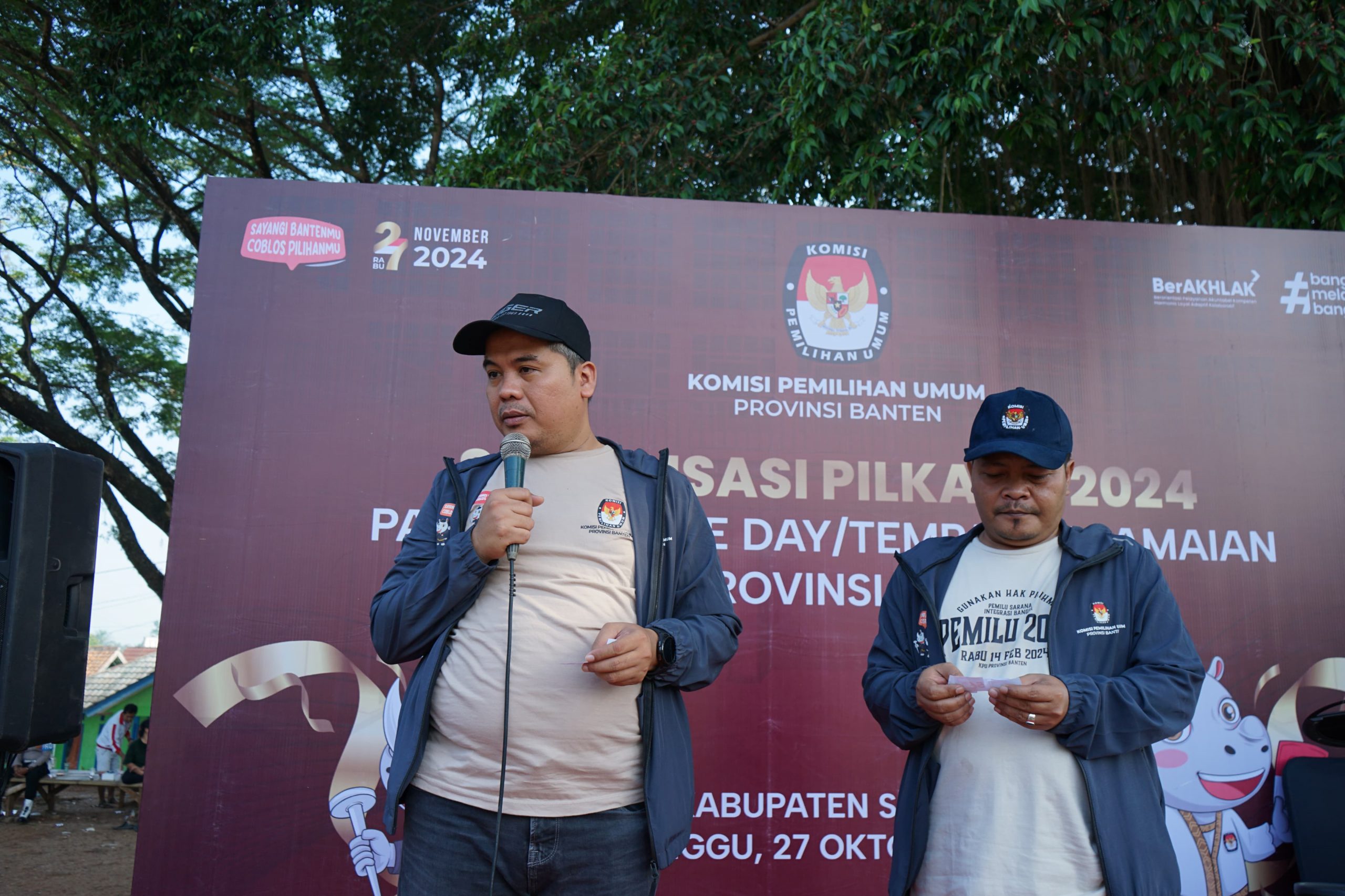 BBC, Serang – Komisi Pemilihan Umum (KPU) Provinsi Banten menggelar sosialisasi pemilihan kepala daerah (Pilkada) Banten tahun 2024 di Alun-alun Kecamatan Petir, Kabupaten Serang, pada Minggu (27/10/2024).