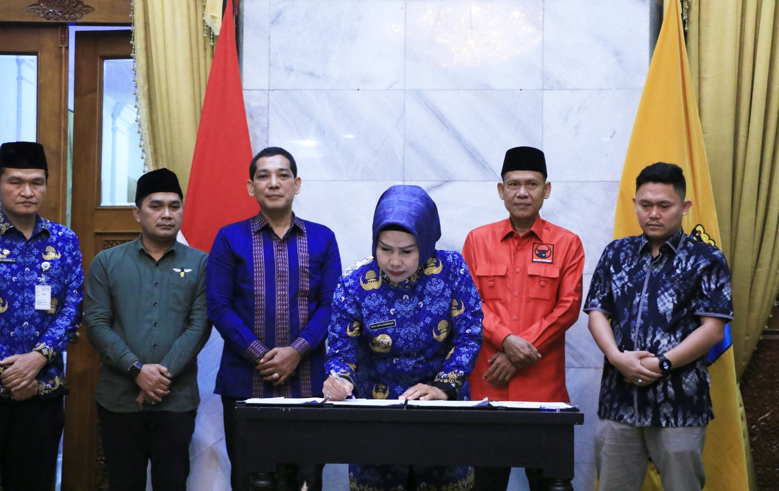 BBC, Serang – Bupati Serang Ratu Tatu Chasanah secara simbolis menyerahkan dan penandatanganan berita acara serah terima bantuan keuangan partai politik (parpol) tahun 2023 di Pendopo Bupati Serang pada Senin, 17 Juli 2023. Bantuan keuangan mengalami kenaikan 100 persen dibanding tahun lalu yang disalurkan melalui Badan Kesatuan Bangsa dan Politik (Bakesbangpol) Kabupaten Serang.