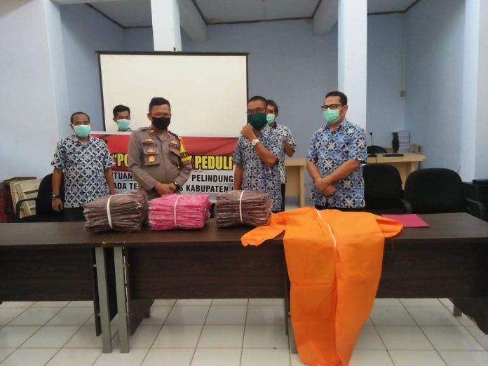 Sebanyak 100 Alat Pelindung Diri (APD) di serahkan langsung oleh Waka Polres Lebak  Kompol Wendy Andrianto,SIK, yang di terima langsung oleh Kepala Dinas Kesehatan Kabupaten Lebak Triyatno Supiono di Aula Dinkes Lebak.