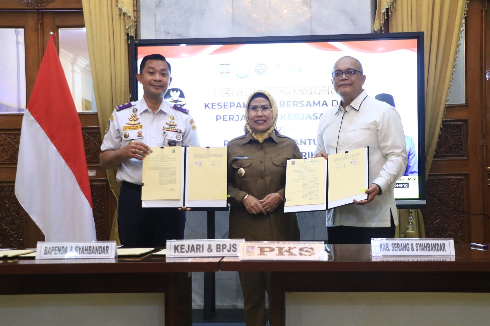 BBC, Serang – Pemerintah Kabupaten (Pemkab) Serang melakukan penandatanganan perpanjangan perjanjian kerja sama atau PKS di pendapo Bupati Serang pada Selasa, 6 Agustus 2024. Penandatangan dilakukan oleh Bupati Serang Ratu Tatu Chasanah, Plt Kepala BPKAD Roni Rohani Sandjadjirdja dan Kepala Bapenda Muhammad Ishak Abdul Raup tentang perpajakan dan peningkatan pendapatan asli daerah (PAD).