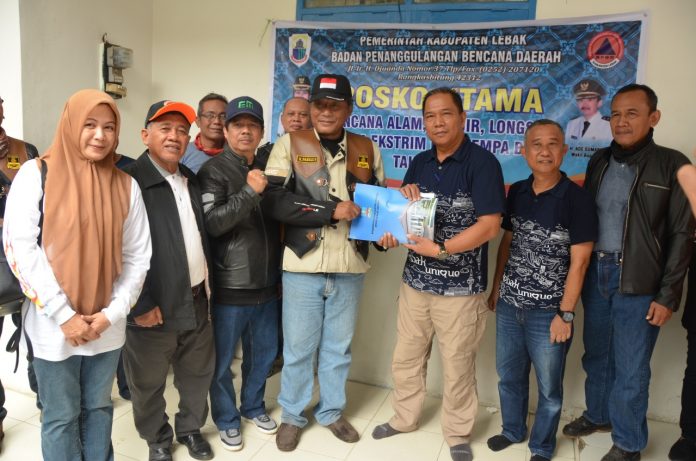 BBC, Lebak – Wakil Bupati (Wabup) Serang Pandji Tirtayasa, Sekretaris Daerah (Sekda), Tubagus Entus Mahmud Sahiri dan pejabat di lingkungan Pemerintah Kabupaten (Pemkab) Serang menyalurkan bantuan untuk korban banjir bandang di Kabupaten Lebak. Bantuan diterima oleh Kepala Satuan (Kasat) Polisi Pamong Praja (Pol PP), Datim di Posko Badan Penanggulangan Bencana Daerah (BPBD) Lebak di Kelurahan Rangkasbitung Barat, Kecamatan Rangkasbitung, Jum’at 24/1/2020.