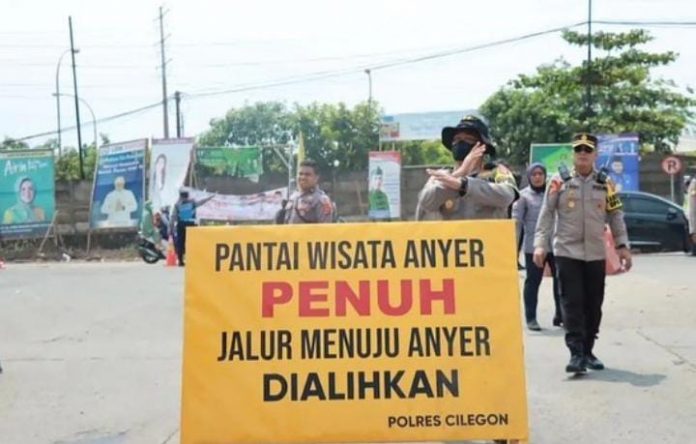 BBC, Cilegon – Polda Banten dan jajaran melakukan rekayasa lalu lintas dengan memberlakukan sistem buka tutup atau one way pada jalur wisata Anyer – Carita.