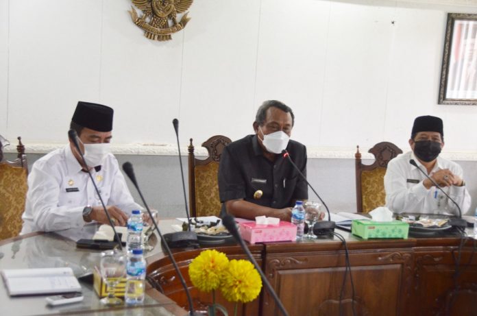 Hal itu disampaikan Entus usai Rapat Koordinasi dengan para camat terkait pelaksanaan Pemberlakuan Pembatasan Kegiatan Masyarakat atau PPKM Mikro, Pilkades Serentak dan Program Penataan Batas Wilayah Kecamatan/Desa di Aula KH. Syam’un Rabu, 30/7/2021.