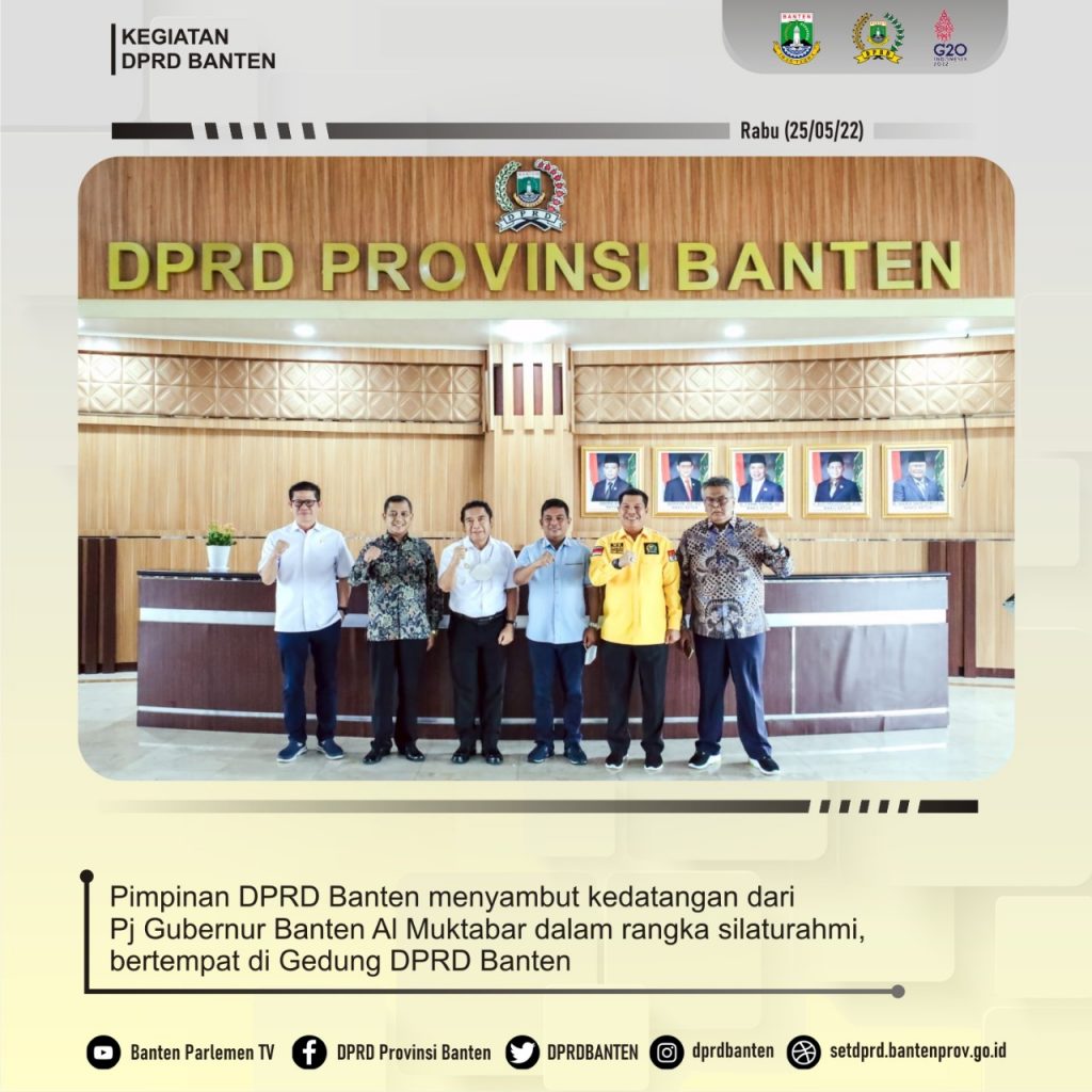 BBC, Serang – Pimpinan DPRD Banten menyambut kedatangan dari Pj Gubernur Banten Al Muktabar dalam rangka silaturahmi, bertempat di Gedung DPRD Banten, Rabu 25/5/22.