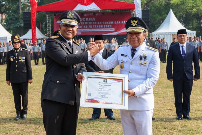 BBC, Tangerang – Penjabat (Pj) Gubernur Banten Al Muktabar meraih penghargaan dari Kantor Wilayah Kementerian Hukum dan HAM Republik Indonesia Provinsi Banten. Penghargaan diterima oleh Pj Gubernur Banten Al Muktabar pada Peringatan Hari Kementerian Hukum dan HAM atau Hari Dharma Karya Dhika (HDKD) Ke-78 Tahun 2023 di Lembaga Pembinaan Khusus Anak Kelas 1 Tangerang, Kelurahan Sukaasih, Kecamatan Tangerang, Kota Tangerang, Senin (21/8/2023).