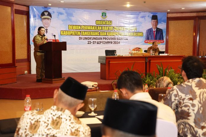 BBC, Serang – Penjabat (Pj) Gubernur Banten Al Muktabar membuka orientasi anggota DPRD Kabupaten Tangerang dan DPRD Kabupaten Pandeglang di Ledian Hotel, Kota Serang, Selasa (24/9/2024). Orientasi untuk memahami ruang lingkup, fungsi, tugas dan kewenangan anggota DPRD. Orientasi juga untuk meningkatkan wawasan kebangsaan, meningkatkan integritas dan moralitas dalam mengimplementasikan kode etik untuk menjaga martabatBbC, Serang itra dan kredibilitas DPRD Kabupaten/Kota.