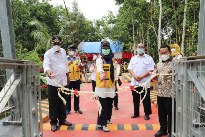 BBC, SERANG – Wakil Bupati (Wabup) Serang Pandji Tirtayasaya, Anggota Komisi V Dewan Perwakilan Rakyat Republik Indonesia (DPR RI) Dapil Banten II Fraksi Golkar, Tubagus Haerul Jaman dan Kepala Balai Besar Pelaksanaan Jalan Nasional Wilayah Provinsi Banten, Wida Nurfaida meresmikan Jembatan Gantung Merkar Baru, Kecamatan Petir pada Selasa, 29 Desember 2020. Diharapkan, dengan dibangunnya jembatan penghubung antara Desa Mekar Baru dan Desa Tambiluk berdampak pada peningkatan perekonomian masyarakat.