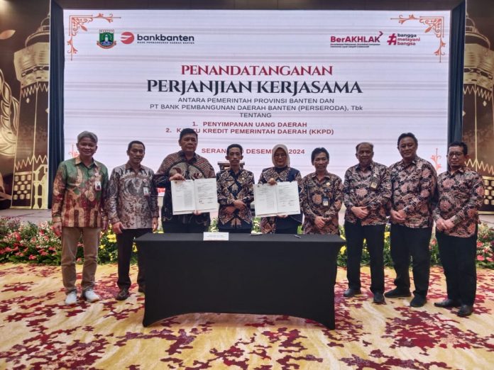 BBC, Serang – Perjanjian Kerjasama Pemprov Banten dan Bank Banten Tentang Penyimpanan Uang Daerah dan Kartu Kredit Pemerintah Daerah (KKPD) kembali ditandatangani. Penandatanganan Kerjasama kali ini dilakukan langsung oleh Kepala BLKAD Provinsi Banten dan Direktur Utama Bank Banten Muhammad Busthami di salah satu hotel di Kota Serang, Jumat (20/12/2024).