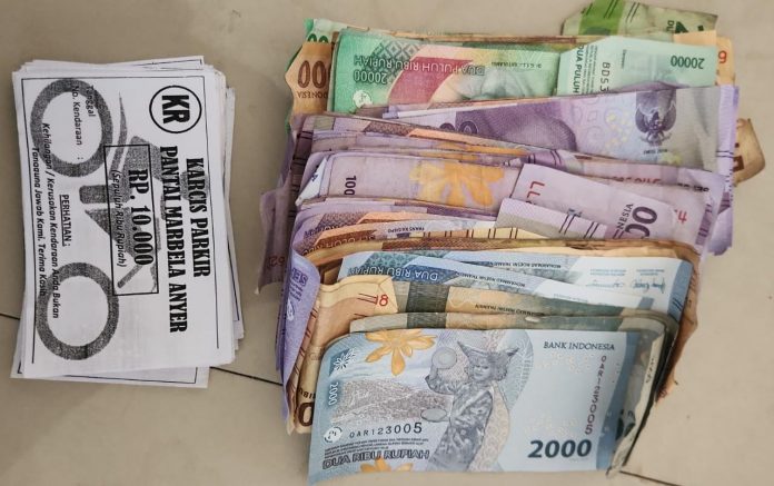 “Juru parkir ilegal yang diamankan telah melakukan pemanfaatan jalan trotoar yang difungsikan sebagai lahan parkir motor dengar memasang tarif tiket Rp10.000,- kepada pengunjung wisata pantai. Pengelola parkir tidak memiliki Ijin parkir dari pemerintah daerah dan dari tiket Rp10.000,- kendaraan tidak membayarkan pajak daerah dan hasil dari parkir digunakan untuk kebutuhan pribadi antara pengelola dengan juru parkir dan belum ditemukan fakta adanya uang yang disetorkan kepada oknum ASN maupun pejabat desa,” tambahnya.