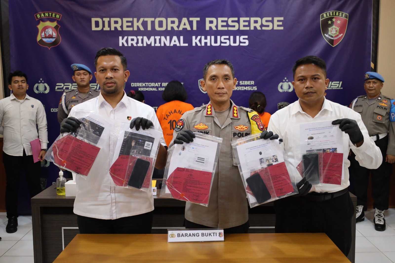 “Barang bukti yang berhasil diamankan adalah 5 buah Akun Instagram yaitu https://www.instagram.com/sipuuts/, https://www.instagram.com/oct.octa/, https://www.instagram.com/restybungaa/, https://www.instagram.com/kemal_arisaputra27, dan https://www.instagram.com/zhrraachh/, 5 buah handphone dengan merk : Iphone X Warna Putih, Iphone XR Warna Hitam, Iphone XR Warna Coral, VIVO Y12S Warna Biru Gelap dan VIVO 1606 Warna Gold,” ujar Didik.